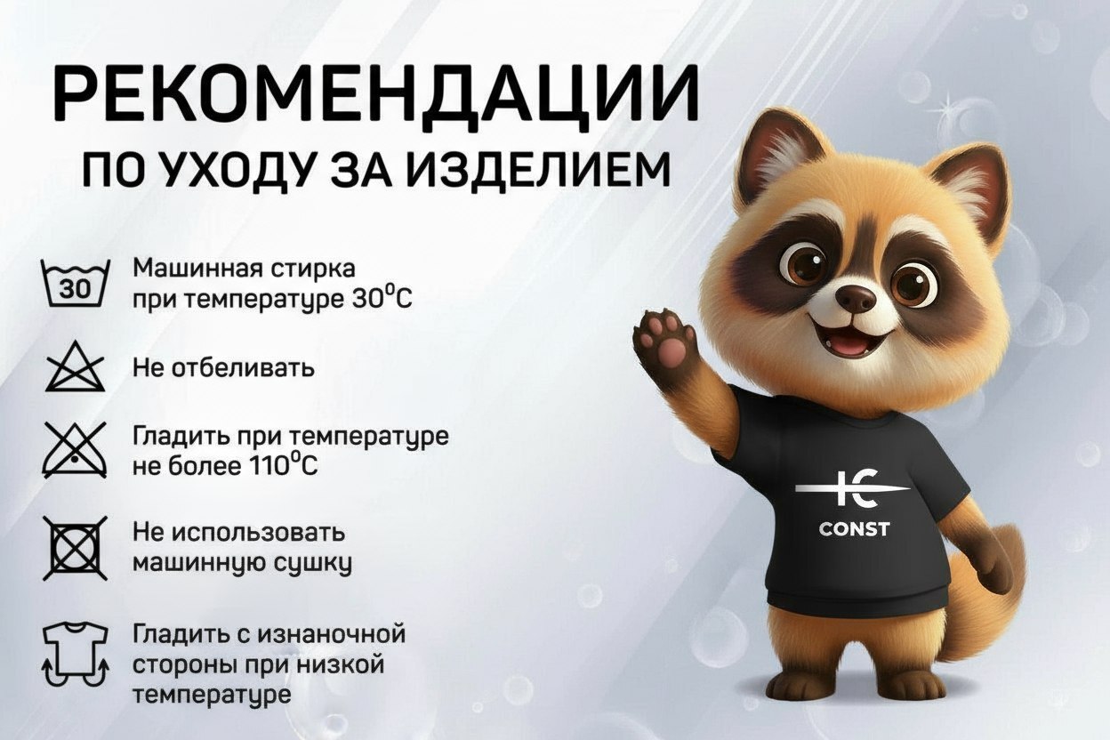 Уход: стирка при 30° наизнанку, без отбеливателя, не сушить в машине, гладить с изнанки